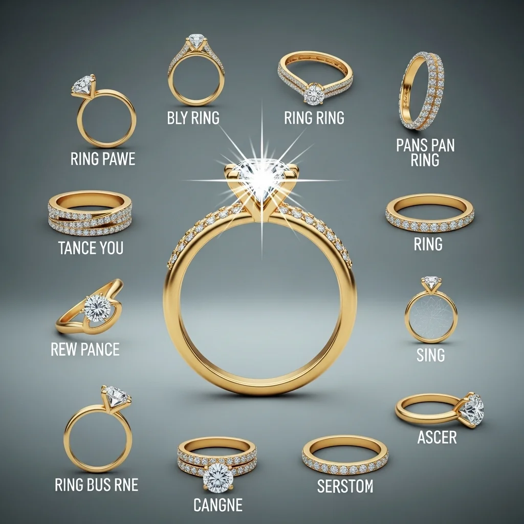 Focus on rings, circles, jewelry types, and play with words creatively.